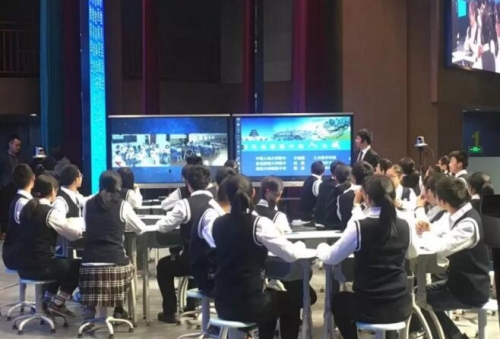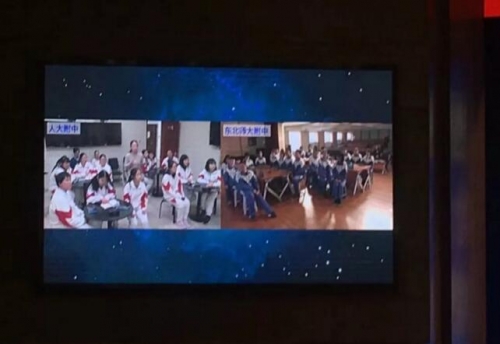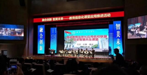 活動上,來自人大附中、西南大學附中、東北師大附中的老師和學生們,共同開創了一節別開生面的“智慧共生課堂”。值得一提的是,這是推進教育信息化應用名校聯盟成立以來的首次智慧共生課堂,也是全國首例三校聯動的智慧課堂。