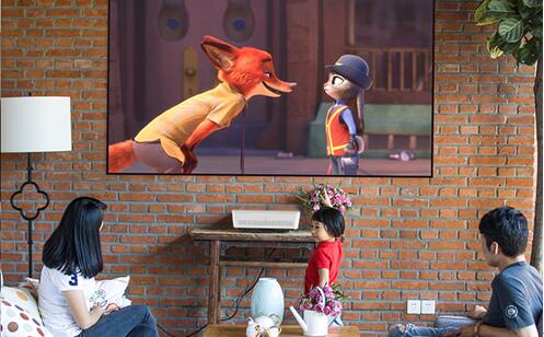 當(dāng)主流電視還在55吋大小徘徊,明基激光超投電視已經(jīng)做到百吋大屏,同時(shí)還擁有真彩全高清家庭影院效果。一般我們看電視,小屏幕意味著需要湊近看,湊近以后會(huì)擋住其他觀看者視線,遠(yuǎn)離又會(huì)有一種“瞭望兵”的走馬觀花感。很顯然,畫面大小會(huì)影響適合觀看的距離及人數(shù),而大屏幕更具選擇空間。試想如果是真人大小的球星在風(fēng)騷控場(chǎng),抑或健身私教當(dāng)場(chǎng)教導(dǎo)動(dòng)作,效果遠(yuǎn)勝小屏幕。