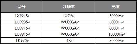 本期介紹明基激光工程投影機系列共五支機型:LX9215、LU9235、LU9715、LU9915、LK970。除了共同的安裝靈活、燈泡長壽命、密閉防塵等優勢外,還覆蓋多段流明和分辨率規格,分別滿足不同場景應用需求。
