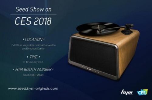 2018年1月9日-12日的美國CES上,HYM 將攜原木色Seed、黑色皮革Beyond聯名款、胡桃木色及首次曝光的深褐色皮革四款黑膠智能音響亮相現場,于 South hall 20014展位進行為期四天的展示及互動體驗,為全球更多用戶傳遞全新的黑膠生活方式。