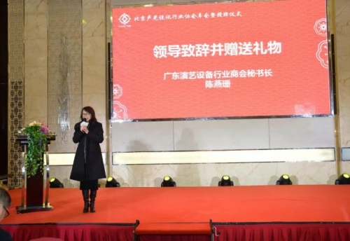晚宴大會上,北京聲光視訊行業協會名譽會長葛亞達,黃志強先生發表致辭“2017年北京聲光視訊行業協會在民政局正式注冊成立,今天在各位來賓的見證下,舉行盛大的發證儀式,具有里程碑意義。北京聲光視訊行業協會年會及授牌儀式舉行,大家同心同力歡聚一堂。特別感謝年末百忙中還親自赴會祝賀的嘉賓及各分會領導們,處處體現濃濃的兄弟情誼。希望以此活動為契機,讓我們攜手前行,共同推進聲光視訊行業再上新臺階,邁向新征程。”