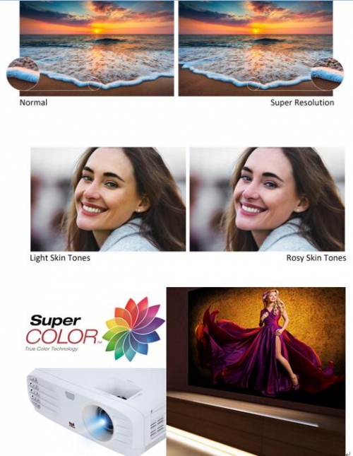 在色彩還原度上面,優派PX747-4K高清家用投影機采用SuperColor整合色輪及燈泡調整功能,寬廣的色域使顏色表現及色彩飽和度佳,在明亮或黑暗的場所也能投影出true-to-life的色彩。此外,圖像處理引擎Color enhancement色彩增加功能,優化色階性能,呈現豐富的色彩畫面。內置的圖像處理引擎Skin Tone 膚色調整功能,在不同投影情景下調節膚色表現,使顯示畫面自然生動。同時,PX747-4K還提供三種色彩模式(高亮模式、標準模式、電影模式)和兩種用戶模式。
