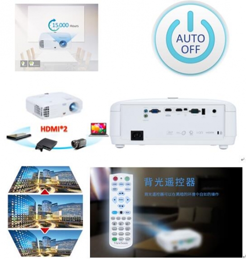 PX747-4K投影機延續了優派人性化的產品設計理念,操作界面具備中文、法文、英文、德文等多種語言。垂直梯形校正功能方便匹配幕布,120%offset使機器擺放及吊裝簡單直接。同時,優派PX747-4K配備雙 HDMI 端口,HDMI 1支持HDCP2.2,方便接駁外接設備從而將流媒體內容在大屏幕上進行播放,配備的USB 5 V 1.5A 電源端口方便接駁Wi-Fi Dongle等設備,并可為無線設備供電。此外,優派 PX747-4K 還配備了背光遙控器,在黑暗環境下也可操控投影機;投影機在節能模式下,投影燈的平均壽命可達 15,000 小時。內置10W 品質喇叭,提供高質量的多媒體聽覺體驗。