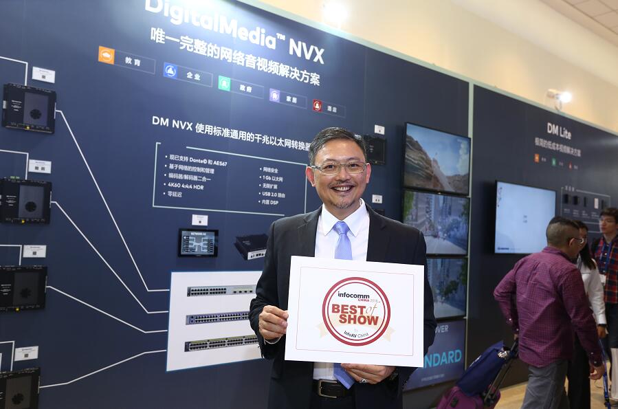 “Best of Show”獎項作為展會上發(fā)布的極具公平公正和含金量的一個獎項,已經(jīng)成為 InfoComm China 展會期間評估優(yōu)秀展品等相關信息的重要載體,深受各方好評?焖悸 DigitalMedia NVX 網(wǎng)絡音視頻解決方案不負眾望,以業(yè)內首個可以通過標準 1GB 以太網(wǎng)傳輸 4K60 4:4:4 HDR 視頻文件且無延遲的解決方案艷壓群芳。