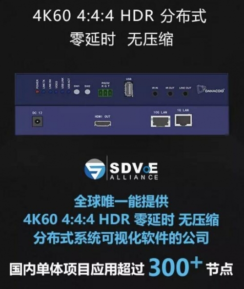 DANACOID是目前全球唯一能提供4K@60 4:4:4 HDR 零延時、無壓縮分布式系統可視化軟件的公司,我們在國內做的單體項目應用已超過300+節點,有著非常成熟的技術與豐富的經驗。此外,DANACOID也是業內權威玩家俱樂部SDVoE的成員。