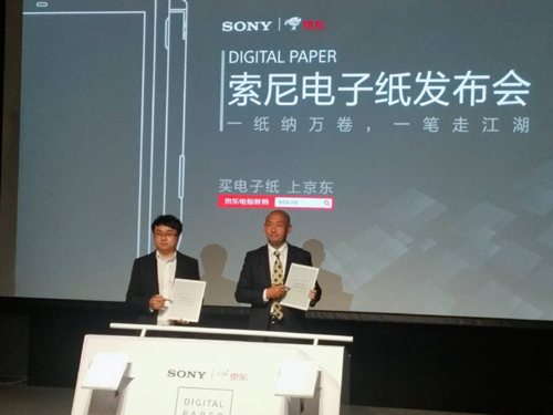 發布會上,索尼中國專業系統集團總裁本野桂先生、京東智能電教業務部總經理劉奐麟先生共同為電子紙揭幕,并宣布從即日起,京東商城開啟獨家在線銷售。索尼DPT-RP1電子紙市場定價為人民幣5666元,為了回饋國內“索粉”的厚愛,6月4日至8日,凡在“索尼專業產品京東自營旗艦店”預約成功并在搶購期下單購買的前500名消費者,將額外獲得價值599元的原廠皮套、價值199元的十個筆芯、以及高附加值的三年廠家質保(含原廠保修一年)。