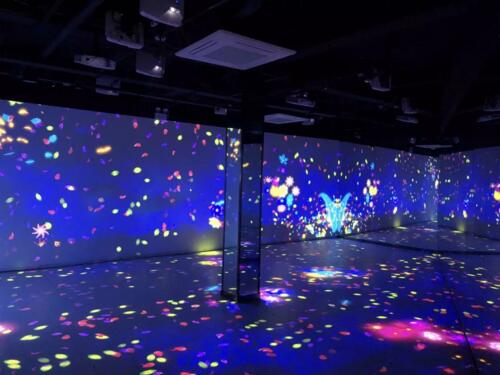 首先我們可以欣賞到的是沉浸式的室內(nèi)場景秀。DET德浩對激光投影機的光路進行合理的設(shè)計,再對多臺激光投影機進行融合后,完美的制造出了沉浸式體驗,游客進來后,會感覺到如置身于夢幻仙景中,體驗一把童話世界中的美好生活。