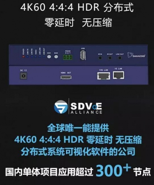 現在,DANACOID已經成為全球唯一能提供4K60 4:4:4 HDR 零延時、無壓縮分布式系統(tǒng)可視化軟件的公司。