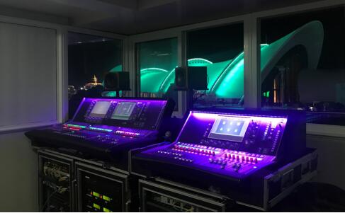所有揚聲器由Powersoft X系列DSP+Dante數字功放驅動,調音臺選用 Allen&Heath dLive數字混音系統。為保證信號傳輸萬無一失,系統各分區均配備了含光纖模塊主備交換機,信號傳輸采用Dante和模擬雙備份實現主備調音臺及音源系統自動切換,既解決了遠距離傳輸問題,同時也保證了系統穩定性及信號傳輸的安全性。
