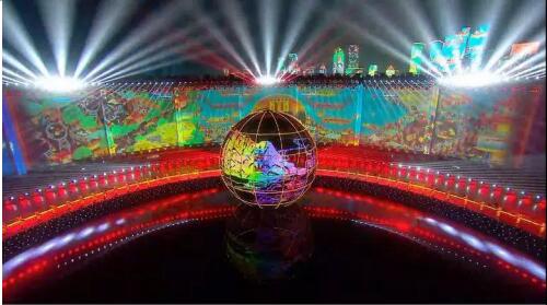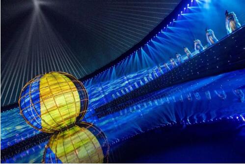 這場國際頂級藝術盛宴在青島奧帆中心舉行,由張藝謀“操刀”擔任總導演,沙曉嵐任總制作人。在海上舞臺,用絢麗光影暈染星辰大海;將富有創造性的環幕投影與多媒體LED球面相結合。在短短30分鐘的表演里,將齊魯風采、青島特色、中華瑰寶傳遞給世界。
