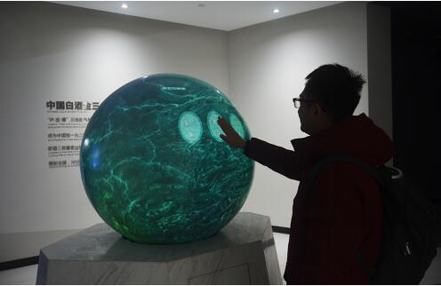 移步向前,來到交互投影球方案旁,它介紹了中國白酒金三角“瀘-宜-遵”,郎酒二郎醬香基地、瀘州濃香基地都位于核心區(qū)域,兩翼齊飛,輻射全國,向世界進(jìn)發(fā)。此方案應(yīng)用了1臺(tái)索尼VPL-F435HZL激光工程投影機(jī),可用手劃動(dòng)球形地圖,并觸控界面播放詳細(xì)資料。