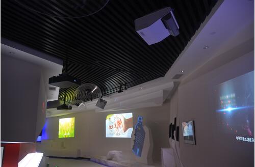 三臺(tái)索尼VPL-F535HZ吊裝,還有三臺(tái)在觀景臺(tái)下方,它們拼融組成墻面影像
