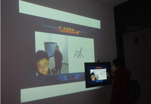 訪客結(jié)束參觀之際,簽名會(huì)呈現(xiàn)在投影大畫面上留作紀(jì)念
