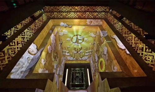 湖南省墓坑投影項目非常具有創新性和技術性,同時它也是國內首個墓坑投影應用。墓坑規模很大,南北長19.5米,東西寬17.8米,深達17米,且為倒錐形的墓坑建筑,不同于以往的地面上的建筑投影,這樣異形的載體使投影光路異常復雜,創意與墓坑層次結構嚴絲合縫的契合需要投影進行精準表現,畫面的表現力取決于片源的無損播放和真實的色彩還原。