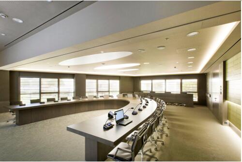 項(xiàng)目需要對(duì)原有會(huì)場(chǎng)進(jìn)行重新設(shè)計(jì),并采用最新的音視頻會(huì)議技術(shù)。會(huì)議室沿用了中心走向的馬蹄形會(huì)議桌,為了最大限度地利用空間,同時(shí)確保設(shè)計(jì)符合人體工程學(xué)。公信會(huì)議設(shè)計(jì)團(tuán)隊(duì)和項(xiàng)目負(fù)責(zé)人進(jìn)行了多次溝通和測(cè)試后,最終確定了該會(huì)議室的整體解決方案。