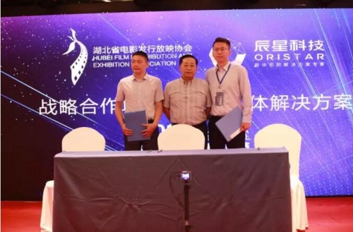 見證湖北省電影發行放映協會秘書長張振峰先生與辰星科技副總經理韓征先生簽署戰略合作協議