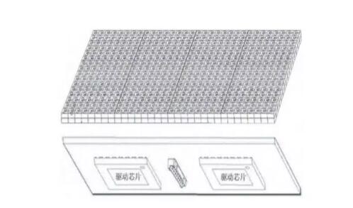 如上圖所示,為一種COB集成封裝LED顯示模塊,正面為LED燈模組構成像素點,底部為IC驅動元件,最后將一個個COB顯示模塊拼接成設計大小的LED顯示屏。