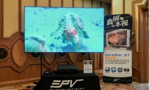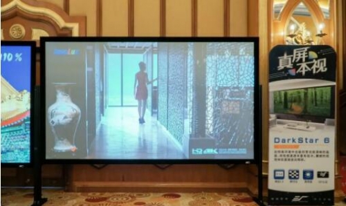 現(xiàn)場展示的EPV系列DarkStar 9-頂級影院專用抗光幕 (此畫面未經(jīng)任何修正)