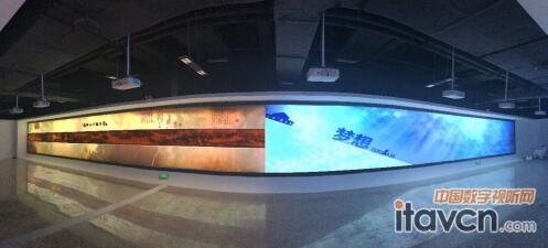 依托“詩畫開陽”的豐富旅游資源,為了讓參觀者全面了解開陽本地十里畫廊景區(qū)特色文化,展廳借助10臺NEC CF6700X(5800流明亮度、1024×768分辨率)高端商務液晶投影機做融合,在30米的高清軟膜幕布上投射瑰麗的超寬幅影像,整幅畫面可達10240×768的高分辨率。