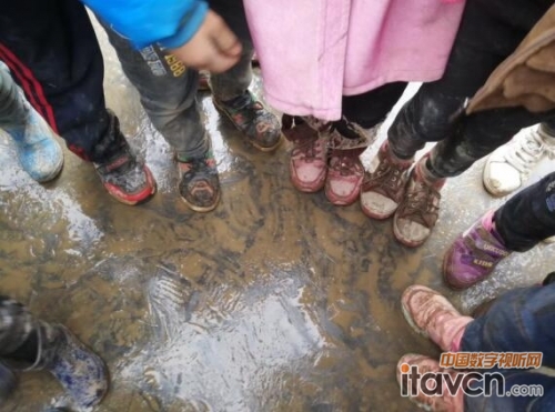 六溝小學(xué)的150個孩子,大部分家庭經(jīng)濟(jì)條件都不好,一半以上是留守兒童,父母外出打工,家里常年只有爺爺奶奶。受當(dāng)?shù)貧夂蛴绊懀⒆觽兩蠈W(xué)的路常年泥濘、濕滑,一到雨天,孩子們腳上的鞋子,幾乎全是濕漉漉的,沾滿泥漿。