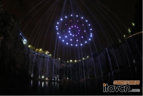 除了酒店本身的建筑亮點,夜晚的亮化設(shè)計也極具創(chuàng)意。酒店開業(yè)當天,燈光和無人機為其助陣。6臺31,000流明松下激光光源工程投影機打造傳奇水幕秀,在這有著天然回音結(jié)構(gòu)的環(huán)形深坑中,配合無人機燈光陣型表演,水、陸、空三維演繹回旋激蕩的創(chuàng)想藝術(shù)空間。