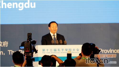 中共四川省省委書記彭清華致辭,他代表省委、省政府向出席大會的各位嘉賓表示歡迎。他說,孔子學院在推動世界各國“民心相通”中發揮著重要作用,越來越成為中外語言文化交流的窗口和橋梁。四川是華夏文明的發源地之一,有文化的基因和興教的傳統。近年來,我省堅持傳承弘揚中華優秀傳統文化,鼓勵支持四川學校在海外建立孔子學院,以學院為“媒”、以語言為“橋”,積極推進教育對外開放,深化與世界各國的交流合作。下一步,我們將一如既往重視支持孔子學院建設,大力推廣漢語言文化,促進各類人才交流交往,推動中國文化、巴蜀文化走出去。