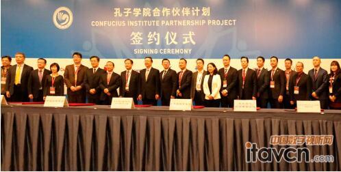 大會期間推出“孔子學院合作伙伴計劃”,旨在促進中外人文交流,推動世界多元多彩的文明發展,鼓勵社會各界積極參與孔子學院建設。北京文香副總裁張軼君先生代表北京文香上臺,與孔子學院總部副總干事、國家漢辦副主任馬箭飛簽署了合作協議。
