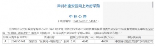 【中國數(shù)字視聽網(wǎng)訊】近日從榮安相關(guān)負(fù)責(zé)人口中獲得,榮安安防于上月11月19日配合移動(dòng)通過“公開、公平、公正”的原則,成功中標(biāo)寶安區(qū)“互聯(lián)網(wǎng)+明廚亮灶”(項(xiàng)目編號:BACG2018154842)智能顯示大屏項(xiàng)目。