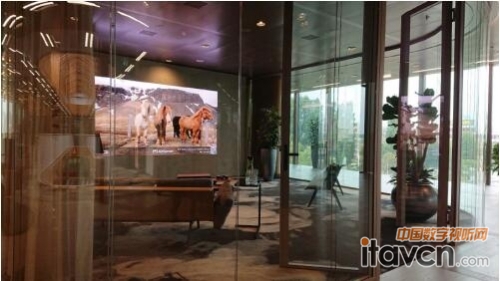 矗立在技術會議室中央舞臺的,是一個3.2米x 1.8米的巨大黑彩晶拼接顯示屏,這個擁有2560 x 1440分辨率的壯觀畫布,專門用來展示企業的創造性成就,通過該大屏幕,能夠將客戶沉浸其中。大屏幕由32個ZRD-1顯示單元組成,它們采用了索尼開創性的無邊框設計,無縫拼接在一起。它創造了一種新的視覺體驗,超越傳統的LED陣列,在規模、視角的展示中,能提供令人震撼的視覺效果。