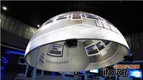 日照經濟技術開發區科技孵化中心優質企業共享展廳成立,12臺DET 8500流明投影機打造的半球穹頂式投影,全面展示黨建、旅游、教育、科技各行業發展特色,現場營造出超震撼的動態視覺效果。