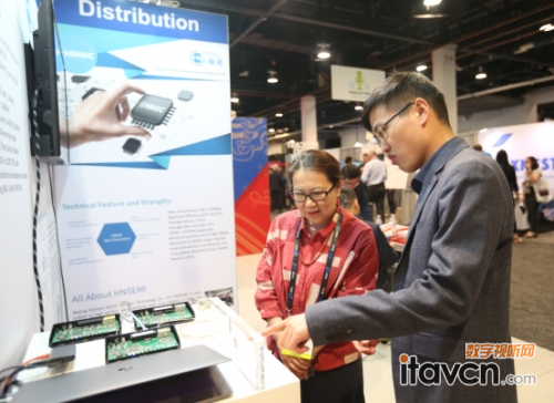 NAB2019北京展區共有十一家優秀企業共同參展,涉及廣播電視領域采集、制作、傳輸、管理、播出等各個環節。各參展商集中展示其最具競爭力的產品。其中,北京中天鴻大科技有限公司帶來的UHF數字多工器和無源設備在海外市場具有較強的競爭力,以不同數字頻道在互不干擾情況下合成到一套天饋線系統上的設計優勢,使得有限的天饋線系統得到高效引用,同時產品性能穩定,低插入損耗、低反射損耗、高隔離度,各項電氣指標均達到國際先進技術水平;北京瀚諾半導體科技有限公司帶來的高性能千兆寬帶接入HINOC核心芯片及解決方案,產品型號為HN1000 & HN1019,其優勢在于自主研發的超寬帶接入技術,實現基于HN1000/HN1019的千兆接入和家庭互聯完整解決方案,充分發揮同軸海量接口優勢,為用戶提供泛在的千兆接入能力,滿足高帶寬、低延遲、全功能、易部署的未來信息接入要求,成為實現5G滲透、8K傳輸、媒體融合的重要載體,擁有國內標準和ITU國際標準雙重保障。此外,北京中科云視科技有限公司帶來的4K內容生產平臺,北京中視廣信科技有限公司帶來的多人直播連線控制器系統等展品均在世界廣播電視的播控領域處于領先地位,具有獨特的海外市場競爭優勢。