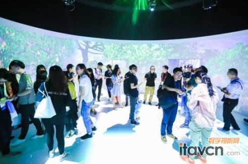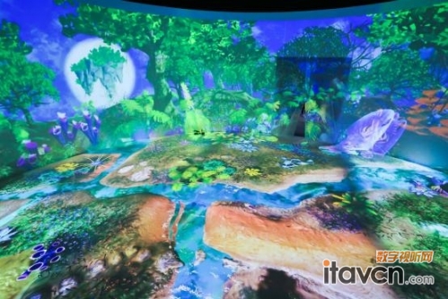 該展項(xiàng)使用了6臺(tái)松下PT-FRZ120C以及6臺(tái)松下PT-FRZ98C,打造出完全無縫隙的360°環(huán)幕影像效果。屏幕上超長(zhǎng)跨度的廣闊畫面營(yíng)造出高度沉浸感。同時(shí),各種虛擬影像還可根據(jù)觀眾的動(dòng)作做出不同的變幻,營(yíng)造人與景的互動(dòng),人與物的互動(dòng),仿佛真實(shí)踏入外星球,給人帶來夢(mèng)幻縹緲的視聽體驗(yàn)。