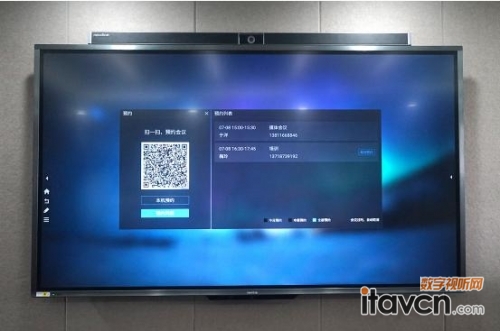 我們要組織一場會議,首先需要預(yù)約,打開newline會議平板上的預(yù)約功能,可以直接進行本機預(yù)約,填入信息即可,也可用手機掃描二維碼預(yù)約,已預(yù)約會議信息顯示在右側(cè)。