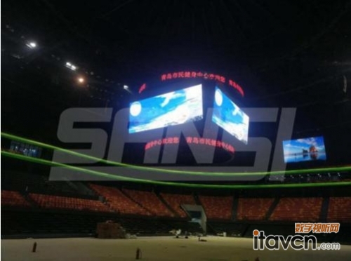 仿造海浪和貝殼的形狀的青島市民健身中心體育館,總投資27.92億,為青島有史以來規模最大的體育場。由三思承建的總面積560㎡的LED大屏,猶如巨大的星幕,散發出耀眼的光芒。