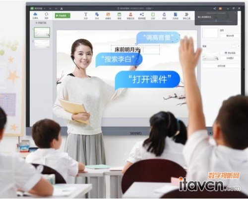 最受老師喜愛的功能,當屬語音喚醒應用軟件。“打開希沃白板”、“打開視頻”、“關閉暴風影音”……一句話的事兒,對應的軟件應用就能快速被喚醒、進入應用界面,或者關閉程序。無論在教室的哪個位置,老師都能通過語音交互調取自己需要的應用,無需在講臺和學生座位之間來回跑動。