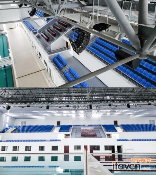 海軍工程大學作為本次軍運會海軍五項比賽項目場地,場館內選用大功率高動態對的線陣音箱作為主要擴聲,滿足高聲壓、距離遠、大范圍擴聲,同時滿足遠處觀眾席有更高的聲壓,也為前區觀眾提供一個優質的聽音條件。整套擴音系統配備DMX系列調音臺,實現實時備份,保證系統穩定運行,通過音頻處理器管理線和低音音箱分頻與延時處理,保證場館內良好的擴聲效果。