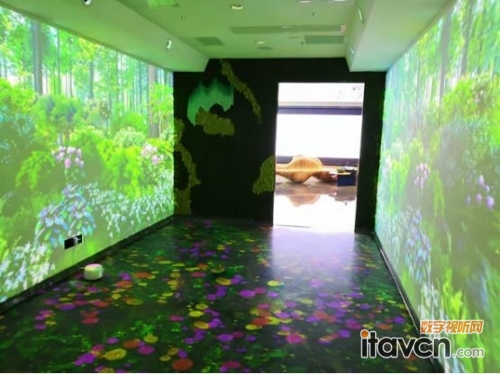 對于武漢某大型數字創意公司來說,要構建出創意十足的展廳才能對所服務的客戶產生說服力。如此以來,該創意公司震撼的四面包圍式沉浸體驗展廳成了當仁不讓的門面擔當。該項目是由12臺NEC CF6500X高端商務投影機打造,融合畫面鋪滿了展廳左、中、右三面墻及地面的整個空間。CF6500X擁有的5500流明高亮度,1024x768分辨率,將這家公司的創意設計構想清晰展示出來。