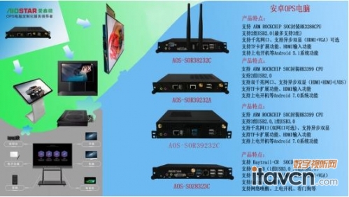 愛鑫微電子向大家展示的是全球首款AI功能會議系統的ARM芯片安卓OPS可拔插整機,以及最新推出的安卓主板RK3399PRO系列和支持vbyone、lvds點屏轉接小板給大家帶來新的體驗。