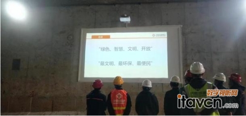 與室內(nèi)的常規(guī)安全宣導(dǎo)不同,此次的安全宣傳欄項(xiàng)目身處隧道之中,緊鄰施工現(xiàn)場(chǎng)。安全宣傳信息需要在嘈雜的環(huán)境中,敲響一線施工人員的安全警鐘。但隧道內(nèi)空間狹小、灰塵遍布,不僅給工人們的閱讀帶來(lái)不便,對(duì)于安裝的投影機(jī)也是極大的考驗(yàn),使用環(huán)境和使用壽命成為衡量投影機(jī)能力的重要條件。宏碁LU-U500激光超短焦投影機(jī)即使是在塵土飛揚(yáng)的施工隧道環(huán)境下,直接投影白墻也不影響到機(jī)器運(yùn)轉(zhuǎn)和投射效果。