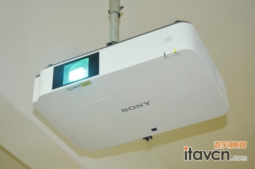 接下來,我們來到能容納90余人的中型教室,空間寬闊,每排有12個座位,需要投影畫面具有大視角,讓兩側學生看清內容;這里1臺VPL-P500XZ投影120英寸屏幕,可以看到,從側面看投影畫面依然明亮自然,文字與細節清晰可辨。