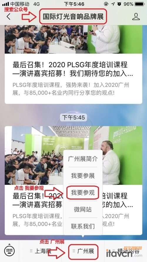 - 微信關注“國際燈光音響品牌展”,點擊“廣州展 — 我要參觀”