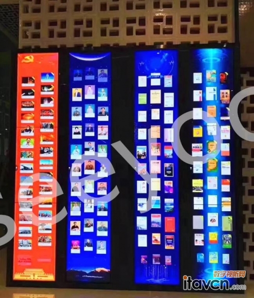 SEEYOO55寸1.8mm超窄邊拼縫,三星原裝屏體,500亮度,3500:1對比度,4K高清畫面顯示,178°全視角視野,加上SEEYOO播控軟件,支持每個(gè)單元獨(dú)立顯示畫面,支持整屏顯示;支持圖像漫游,每個(gè)信號在任意屏移動;支持畫中畫顯示,在一個(gè)單元圖片上顯示其他畫面,多個(gè)圖像隨意拖動;也支持畫面拉伸、疊加等。此次數(shù)字圖書館主要用于入口處的瀑布流電子圖書的下載,以及圖書陳列館數(shù)字長廊的文化展示。