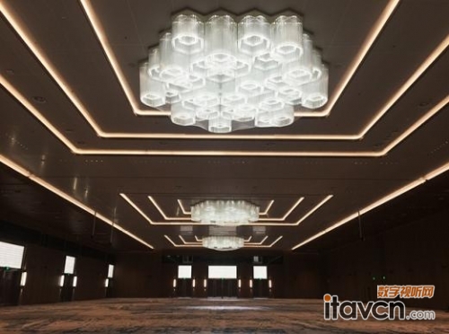 值得一提的是,在該項目中贏康還為會展中心的國際報告廳進行了投影系統的設計,并采用了數臺科視Roadie 4K45投影機。該報告廳2200多平米,階梯式布局,可容納1800多人同時進行國際性會議等大型活動,投影機負責的展廳前場幕(23.5m×7m)與中場幕(15m×7m)的投影工作。