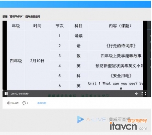 【數字視聽網訊】受疫情影響,多省線下開學時間再推遲。2020年2月11日,湖南省教育廳發布了《關于調整2020年春季學期開學時間的通知》,要求春季學期延期開學并提倡“停課不停學”。湖南省瀏陽市教育局、邵陽市洞口縣教育局、長沙市麓山國際實驗學校等多地教育系統,通過奧威亞“云+端”技術,在人員不聚集前提下,保障當地“停課不停學”高效、高質、有序的開展。