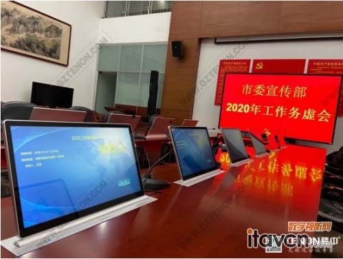 該項目主要安裝了TENON(騰中)液晶升降一體機、桌面式話筒、無紙化會議終端、數字會議控制主機、數字編解碼器、數據交換中心、音柱音箱等。通過這些設備,實現對無紙化智能會議系統、擴聲系統、會議討論系統的有序控制,方便快捷。