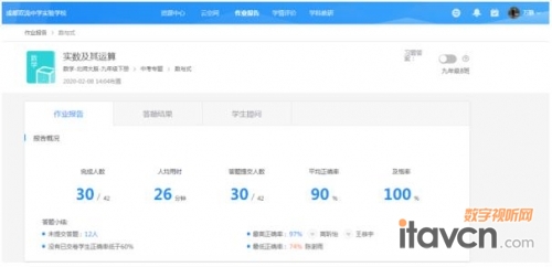教授七年級英語的何老師說:“進入作業報告后我眼前一亮:答題人數、未提交答案人數、平均用時、最高正確率、最低正確率等各種數據一目了然。特別是看到每個小題的正確率和學生答題詳情,感覺作業評講不再迷茫。“