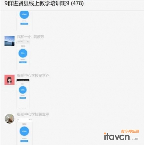 全縣參訓(xùn)的5000余名教師被分流到11個(gè)臨時(shí)組建的微信群。每個(gè)群中,由希沃講師專門運(yùn)營,并以直播教學(xué)、微信群交流答疑的方式進(jìn)行培訓(xùn)。參訓(xùn)的教師們認(rèn)真聽講、熱烈討論,課后及時(shí)進(jìn)行實(shí)踐操作,按時(shí)完成每堂課的作業(yè)。尤其是很多年齡偏大的教師,對于這些現(xiàn)代化的教學(xué)手段不甚熟悉,但他們克服重重困難,好學(xué)好問,在希沃講師們的熱心幫助下,順利通過培訓(xùn)考核。