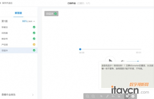 (批改語音作業并批注標語,幫助孩子糾正發音)