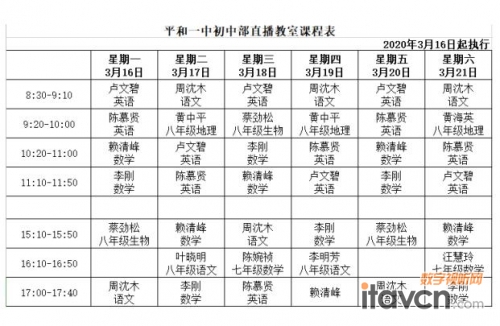 而學校初中部的老師經過多次交流探討,結合學生在家學習情況,制定科學合理的課堂表,充分利用信息化教學的工具,有效保障學生居家學習的效果。