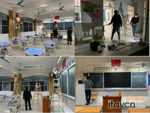 為了做好本次分班教學的服務保障工作,希沃團隊也早早開始了準備工作。此次開學,單單是青秀區,就涉及到10個學校,共計83套希沃互動錄播設備的安裝調試工作。好在希沃互動錄播的安裝調試相較傳統錄播設備要更加方便快捷,在時間緊、任務重的情況下還是圓滿完成了準備工作。